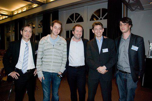(from left to the right: Tony Gomes - Advance IT, Alexandre Malsch - Eeple, Thomas Defaye - Microsoft, Joannès Vermorel - Lokad. Original picture taken by Damien Roué