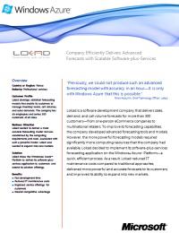 La previsión ha estado disponible como una práctica empresarial racionalizada por más de un siglo. Sin embargo, creemos que cuando se trata de previsión escalable, Lokad es único. Invertimos muchos esfuerzos para escalar Lokad durante 2009 para atender las necesidades de nuestros clientes más grandes. En particular, hemos migrado nuestra tecnología hacia Windows Azure, la plataforma de computación en la nube de Microsoft.