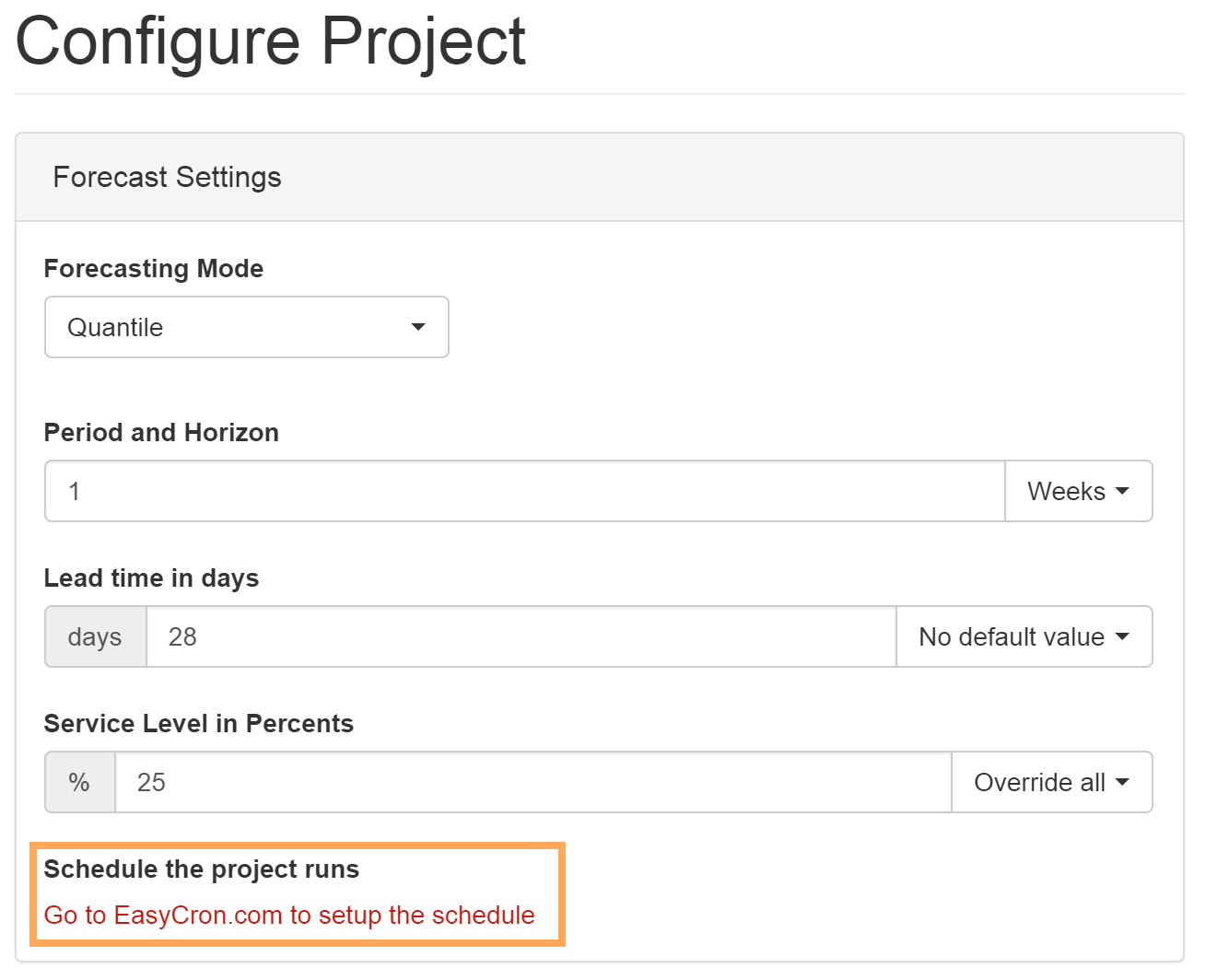 Cette nouvelle configuration est plus sécurisée. EasyCron n’a pas accès à votre compte Lokad. EasyCron se voit simplement accorder le pouvoir de lancer le rafraîchissement d’un projet de prévision, et rien d’autre.
